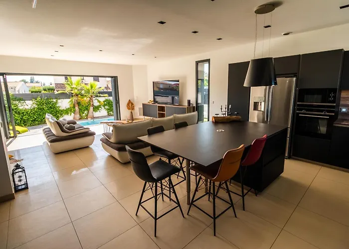 Along with access to such natural sites as Reserve Nature Preservelle nationale de l'Estagnol, 3.7 km away, the 1-bedroom Villa Climatisee 110M2 Avec Piscine Lattes offers a private pool.